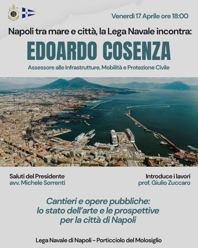 “Siamo orgogliosi di ospitare questo ciclo di tre incontri con personaggi di spicco della politica e della cultura del nostro territorio – sottolinea Michele Sorrenti, Presidente della Lega Navale di Napoli - Un impegno che ribadisce l’impegno della Lega Navale nella promozione dei valori del mare, nella diffusione della conoscenza e nella costruzione di un legame sempre più forte tra cittadini, istituzioni e territorio".