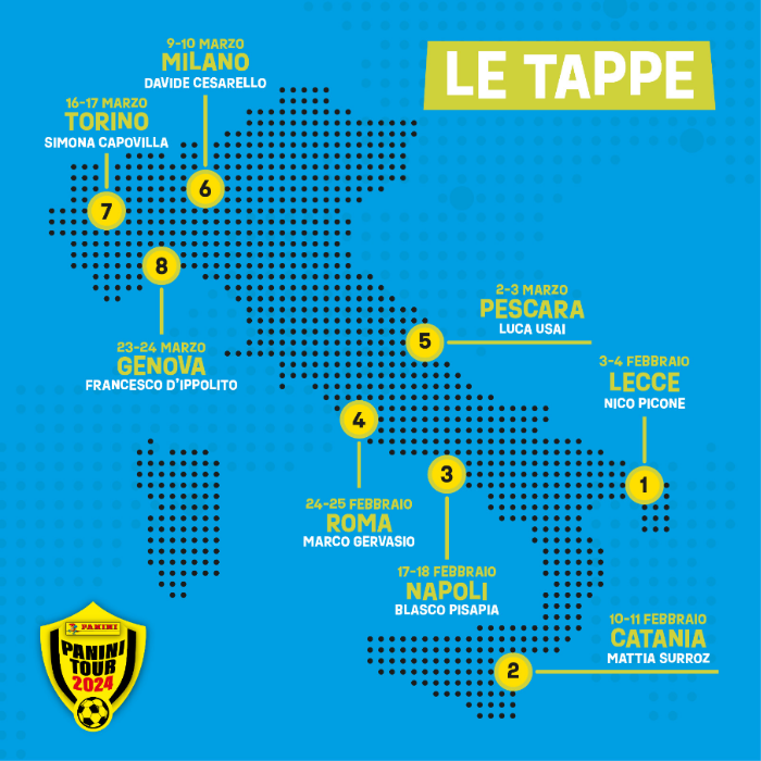 Quest’anno, inoltre, il Panini Village ospiterà anche il Panini Studios, location d’eccezione per interviste e approfondimenti che accoglierà ospiti speciali in ogni tappa del Tour.