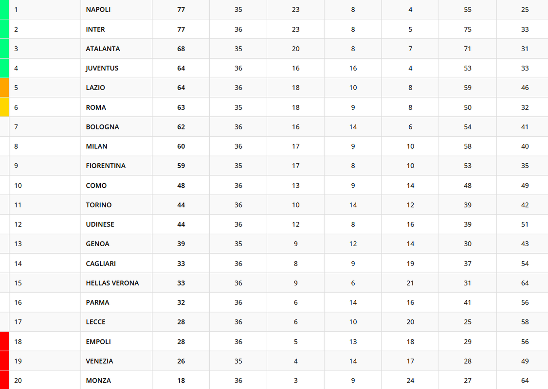 L'Inter vince in casa del Torino, nel match valido per la 36esima giornata di Serie A e aggancia a quota 77 punti il Napoli in vetta. I granata restano a quota 44 punti. Ecco la classifica provvisoria.
