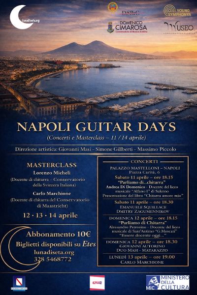 Si terrà da sabato 11 fino al 14 aprile 2026, nella suggestiva cornice di Palazzo Mastelloni (Piazza Carità, 6 – Napoli), la prima edizione di Napoli Guitar Days, un evento di respiro internazionale dedicato alla chitarra classica, alla formazione e alla divulgazione musicale. La manifestazione, sotto la direzione artistica di Giovanni Masi, Simone Giliberti e Massimo Piccolo, nasce con una visione chiara e ambiziosa.