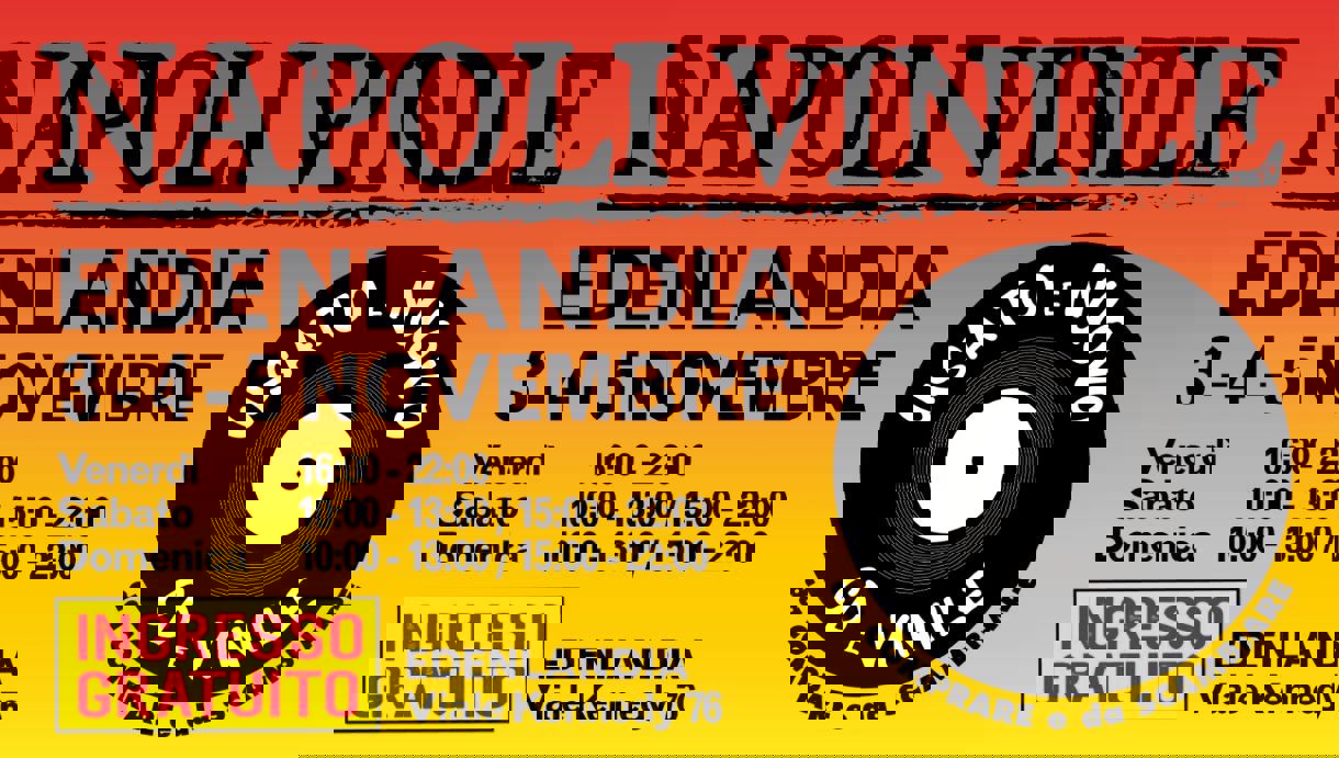 La PRIMA EDIZIONE di NAPOLIVINILE si terrà nelle giornate di Venerdì 3, Sabato 4 e Domenica 5 Novembre 2023, presso il parco Edenlandia, in Viale Kennedy 76, e sarà aperta Venerdì dalle ore 16:00 alle ore 22:00, Sabato e Domenica dalle ore 10:00 alle ore 13:00 e dalle ore 15:00 alle ore 22:00.