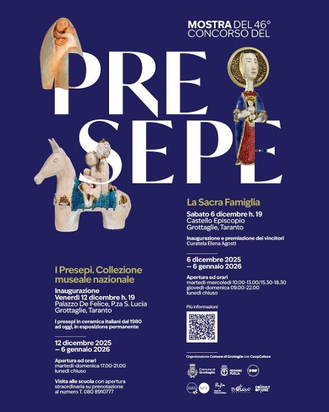 La tradizione del presepe torna al centro della scena a Grottaglie. Al Castello Episcopio è stata inaugurata la 46ª Mostra del Presepe – La Sacra Famiglia, che resterà aperta al pubblico fino al 6 gennaio. Una cerimonia molto partecipata ha dato il via all’esposizione e, come ogni anno, ha visto la proclamazione dei vincitori del concorso nazionale.