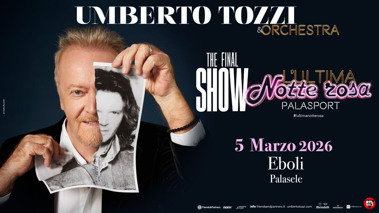 Umberto Tozzi dà il suo addio alla scena live con i suoi ultimi dodici concerti, di cui sette appuntamenti nel nostro Paese (come le sette lettere che compongono il suo nome). Il primo, domani giovedì 5 marzo al Palasele di Eboli per poi raggiungere Bari, Roma, Firenze, Milano, Padova. Sul palco delle date in Italia lo affiancheranno degli ospiti speciali: gli straordinari artisti, e amici di una vita, Marco Masini e Raf. Successivamente gli ultimi cinque concerti in Europa (come le cinque lettere che compongono il suo cognome), con le tappe in Svizzera, Austria, Belgio, Francia e infine Regno Unito. Queste date sugellano il ciclo di live in tutto il mondo, un lungo viaggio che ha trasformato ogni palco in un’esplosione di emozioni e che oggi si chiude con l’energia delle ultime tappe di un tour indimenticabile per l’artista e per il suo pubblico.