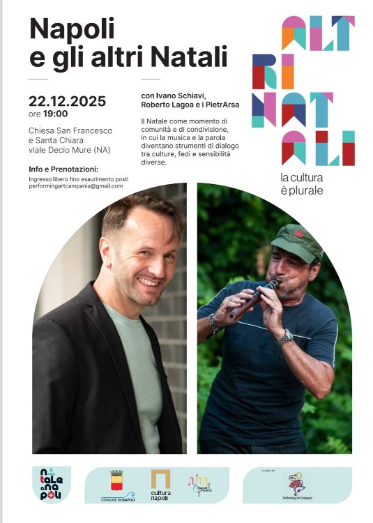 Lunedì 22 dicembre 2025, nella Chiesa di San Francesco e Santa Chiara a Ponticelli (NA), in Viale Decio Mure, alle ore 19,00, arriva il Concerto di Natale della World Music Pietrarsa con Roberto Lagoa e Ivano Schiavi un’iniziativa promossa e finanziata dal Comune di Napoli, nell’ambito della rassegna “Napoli e altri Natali”.