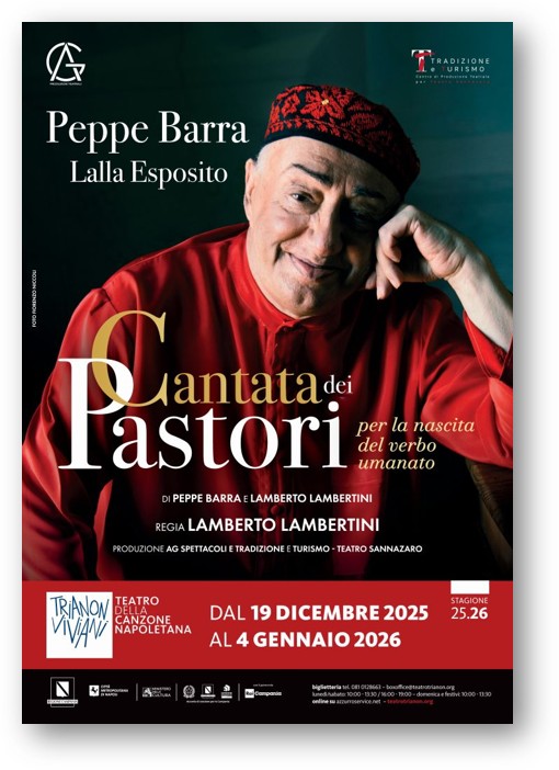 Non c'è Natale senza Peppe Barra con la sua classicissima Cantata dei Pastori. L'Artista incarna il pulcinellesco Razzullo, con Lalla Esposito nel ruolo di Sarchiapone.