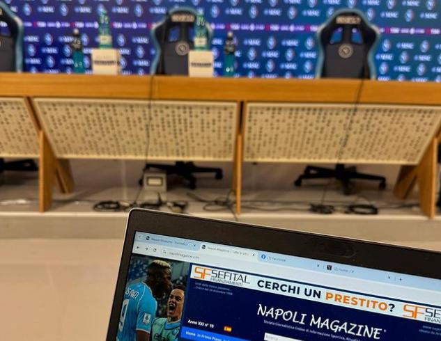 NAPOLI - Napoli in silenzio stampa, dopo la sconfitta contro il Bologna al Maradona. Francesco Calzona e i calciatori azzurri non hanno rilasciato dichiarazioni ai microfoni dei media presenti. Di seguito la foto di "Napoli Magazine" dalla sala stampa dell'impianto di Fuorigrotta.