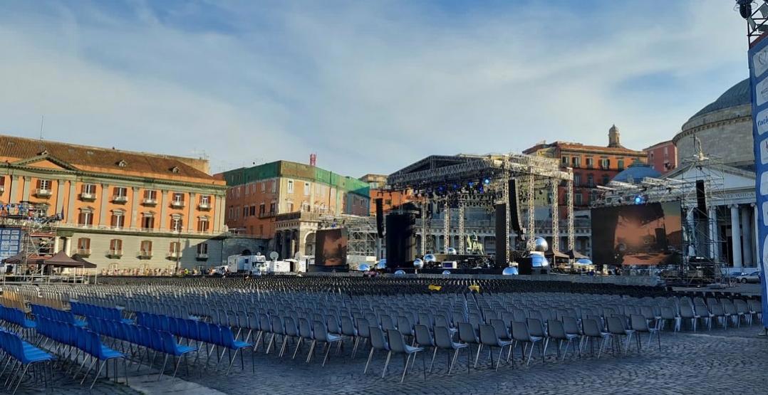 NAPOLI - "Uno come te, trent'anni insieme", è tutto pronto a Piazza del Plebiscito per il doppio concerto di Gigi D'Alessio. L'appuntamento è in piazza Plebiscito venerdì 17 giugno, con diretta in prima serata su Rai 1 e su Radio 2 e sabato 18, serata che sarà ripresa per realizzare un docufilm. Ecco le immagini di "Napoli Magazine".