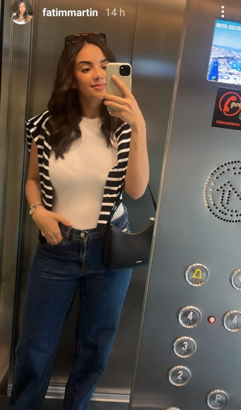 Selfie in ascensore per Fatima, fidanzata del difensore del Napoli Rafa Marin. Ecco una foto da lei pubblicata su Instagram.