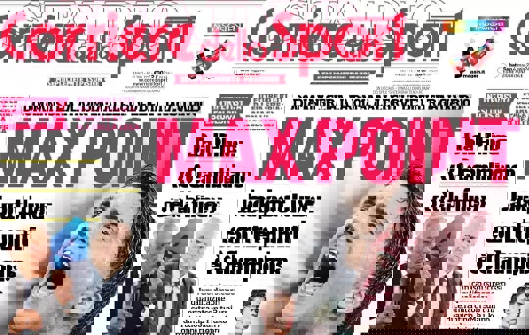 Il Corriere dello Sport in prima pagina parla del big match tra Roma e Juventus che potrebbe valere la Champions League per i bianconeri.