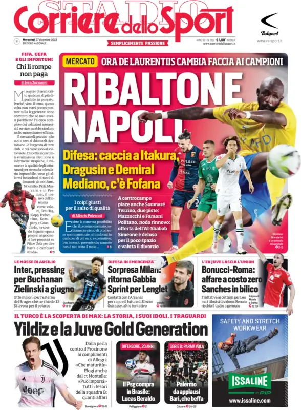 In prima pagina il Corriere dello Sport dedica spazio al mercato delle big di Serie A, soprattutto a quello del Napoli.