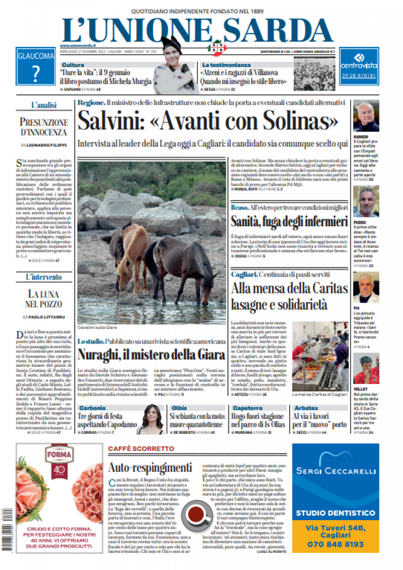 Nell'edizione odierna de "L'Unione Sarda", nella prima pagina c'è un piccolo spazio in alto a destra dedicato al Cagliari e a Ranieri.