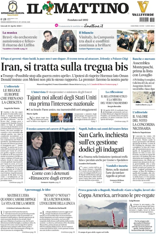 Di seguito le prime pagine dei principali quotidiani di giovedì 16 aprile 2026.