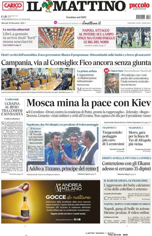 Di seguito le prime pagine dei principali quotidiani di martedì 30 dicembre 2025.