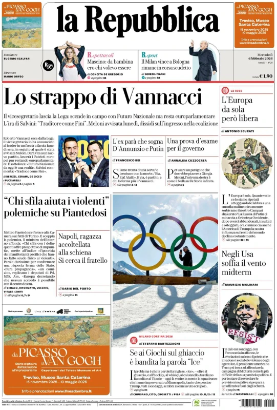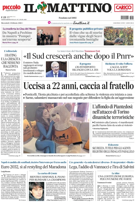 Focus sul Napoli, il restyling dello stadio Maradona e molto altro sulle prime pagine dei quotidiani nazionali e sportivi in edicola mercoledì 4 febbraio 2026. Il Mattino apre con "La carica di Conte: rientri e rinforzi, il piano per blindare la Champions". Spazio anche a "Euro 2032, si al restyling del Maradona". "Napoli si candida alle semifinali, decisivo l'intervento per il terzo anello".