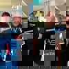 FOTO SHOW NM - Napoli, da Newcastle a Manchester per abbracciare gli azzurri: il tifoso Giuseppe con Kevin De Bruyne, Conte, ADL, Hojlund e Stellini
