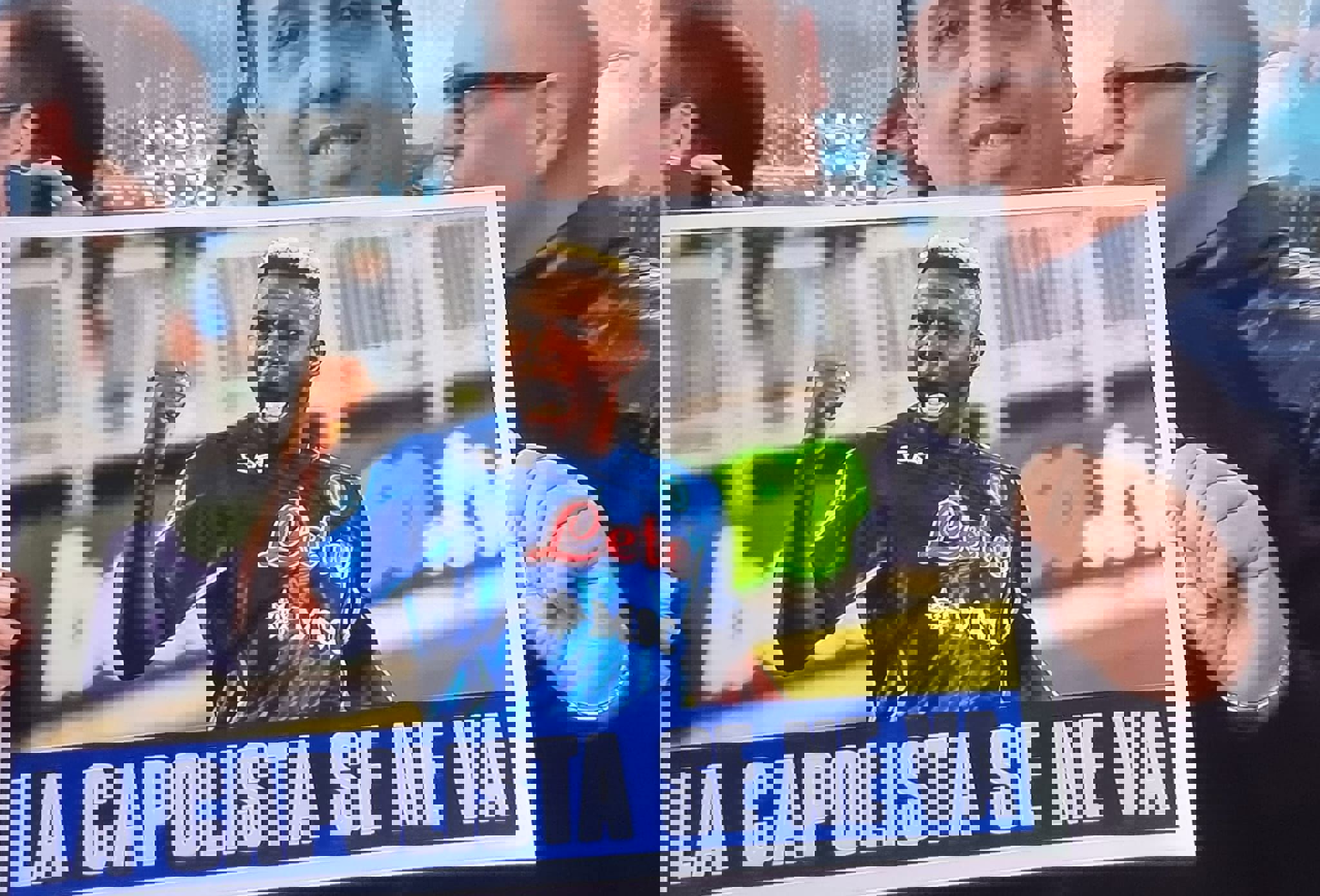 NAPOLI - "La capolista se ne va, ci credo", si legge su due cartelli mostrati alle telecamere da un tifoso azzurro al Maradona dopo i gol di Osimhen e Zielinski contro l'Udinese. Ecco gli scatti di "Napoli Magazine".