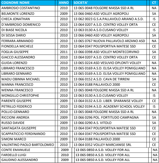 Di seguito l’elenco dei giovani atleti convocati: