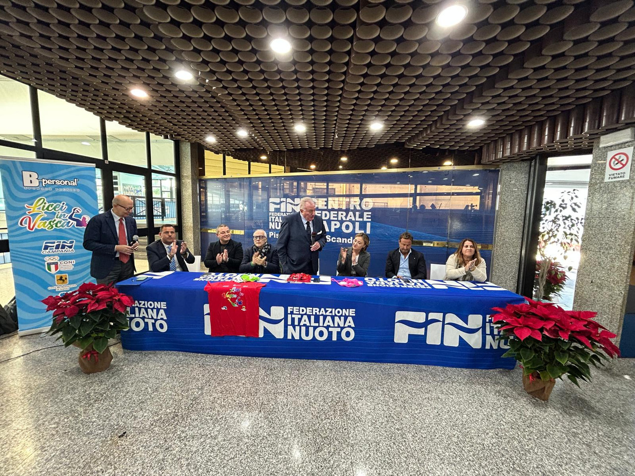 La manifestazione, nata su iniziativa del consigliere della Fin Campania, Sergio D’Abundo, è stata presentata nel corso di un incontro svoltosi nella Piscina Scandone al quale hanno partecipato l’Assessore allo Sport del Comune di Napoli, Emanuela Ferrante, il presidente del Comitato Regionale Campano della Federazione Italiana Nuoto, Giancarlo Bracale, il Consigliere delegato in materia di Sport, Giovani ed Eventi della Città Metropolitana di Napoli, Sergio Colella, la Coordinatrice regionale di Educazione Fisica e Sportiva dell’Ufficio Scolastico Regionale della Campania, Assunta Vitale e il Consigliere Nazionale della Fin e Direttore Tecnico della piscina Scandone, Luca Piscopo. Sono intervenuti anche Paolo Trapanese, per lunghi anni al vertice della Federnuoto Campania e Giancarlo Bosso di B-personal, sponsor tecnico della manifestazione. Erano presenti all’incontro con la stampa delegazioni degli studenti e i presidi dei 12 istituti scolatici (Caccioppoli, Cantone, Mercalli, Nitti, Bernini-De Sanctis, Pagano, Pansini, Pontano, Salesiani, Mazzini, Imbriani e Sbordone) che hanno aderito all’iniziativa.