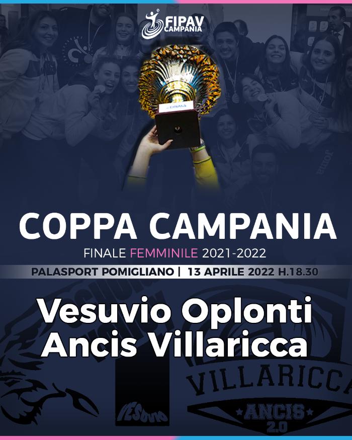 Ad alzare la coppa sarà una tra Vesuvio Oplonti Volley e Ancis Villaricca, che in semifinale, lo scorso dicembre, hanno avuto rispettivamente la meglio di Icarus Marcianise (3-0 per le torresi) e San Giorgio Volley (3-1 per Villaricca).