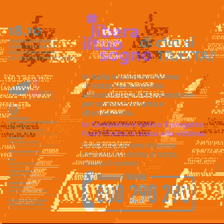 Se pensi che una persona straniera che conosci sia vittima di tratta, perché costretta a compiere azioni (prostituirsi, lavorare, mendicare, sposarsi…) contro la sua volontà, rivolgiti al numero verde nazionale 800 290 290