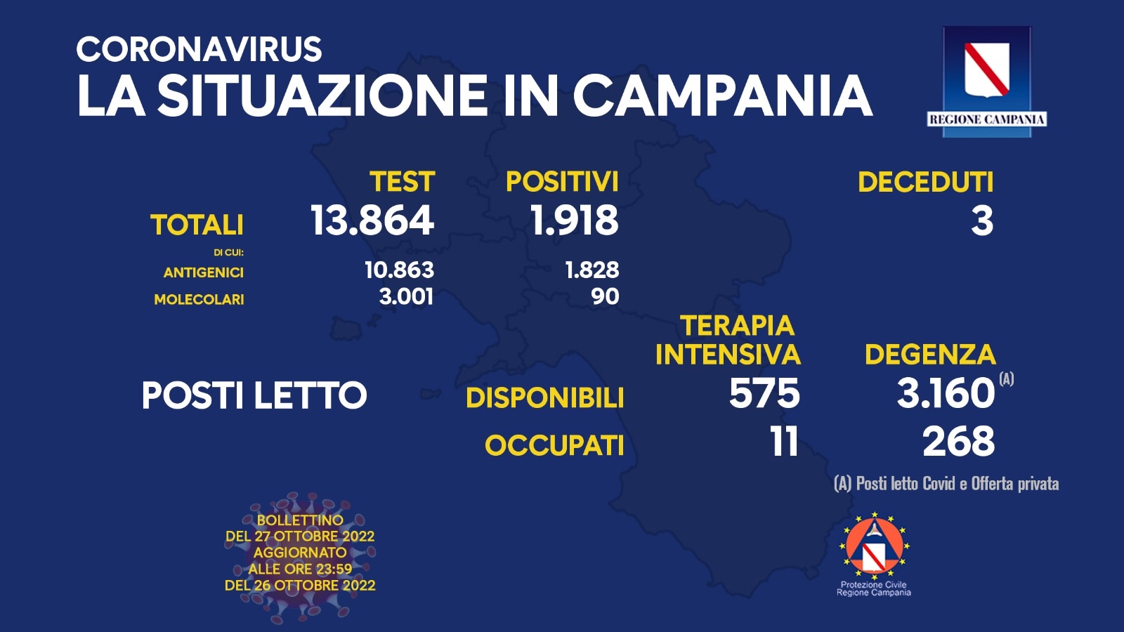 Pubblichiamo la card con i dati aggiornati alle 23:59 di ieri del bollettino Covid della Regione Campania.