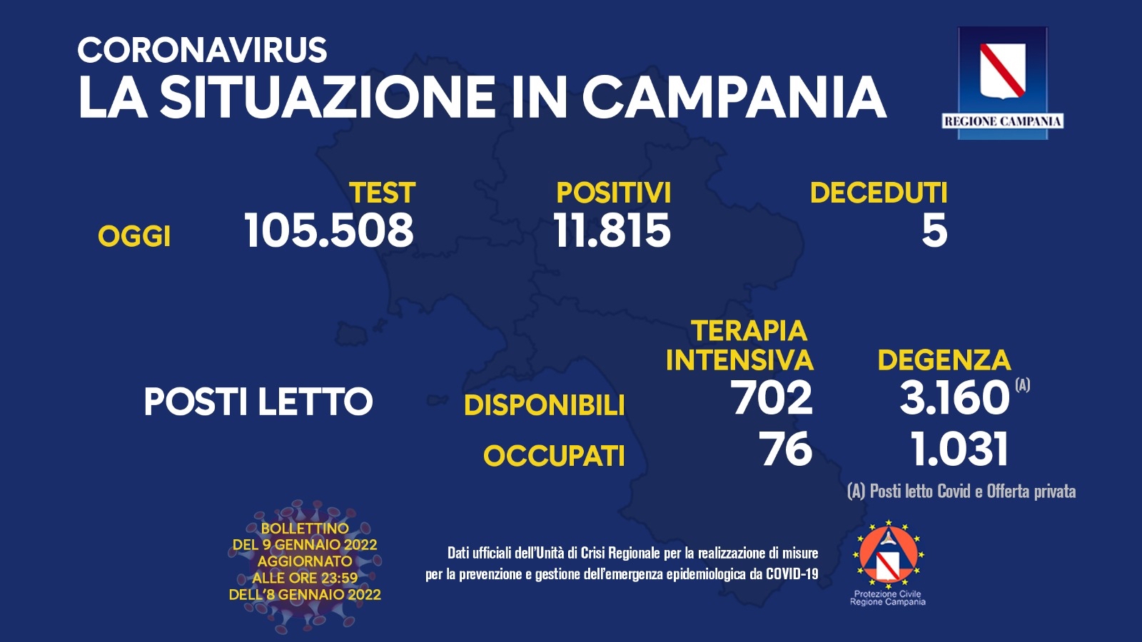 COVID-19, IL BOLLETTINO ORDINARIO DELL'UNITÀ DI CRISI DELLA REGIONE CAMPANIA