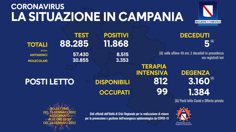 COVID-19, IL BOLLETTINO ORDINARIO DELL'UNITÀ DI CRISI DELLA REGIONE CAMPANIA