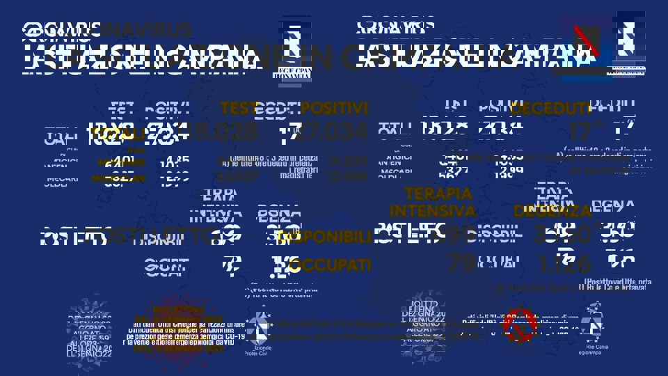 COVID-19, IL BOLLETTINO ORDINARIO DELL'UNITÀ DI CRISI DELLA REGIONE CAMPANIA