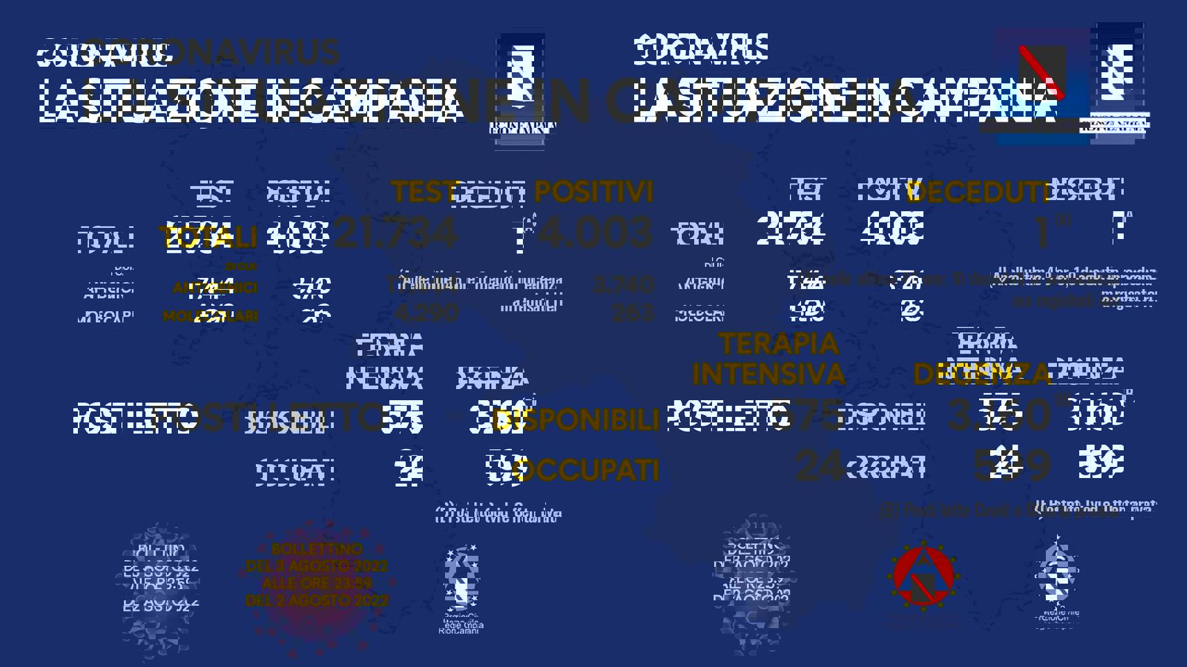 COVID-19, IL BOLLETTINO ORDINARIO DELLA REGIONE CAMPANIA