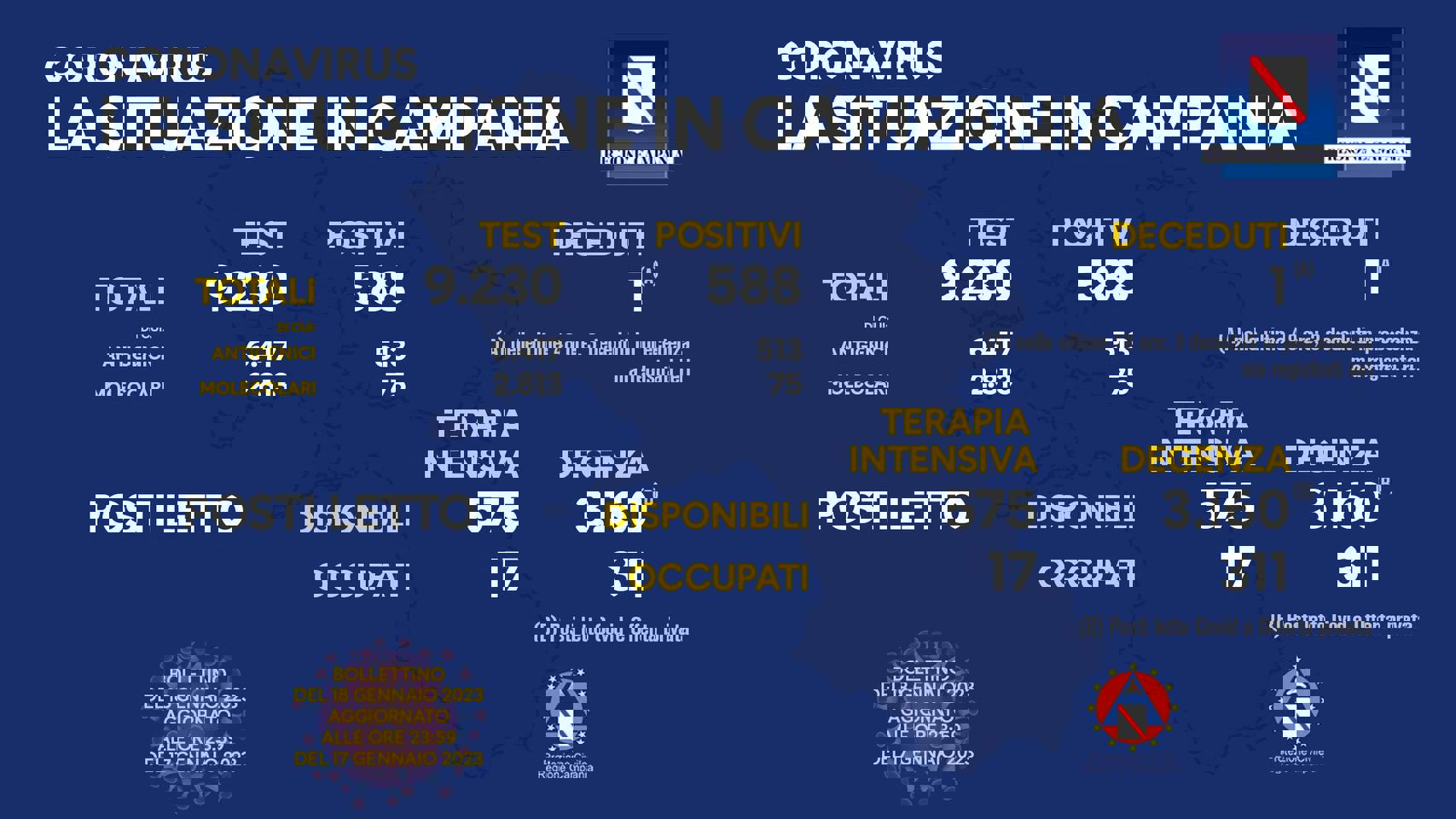 CORONAVIRUS - Regione Campania, 588 positivi su 9.230 tamponi nelle ultime 24 ore, 1 morto nelle ultime 48 ore, 3 deceduti in precedenza ma registrati ieri