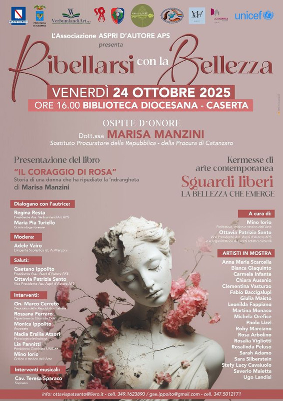 L’evento, organizzato e promosso dall’Associazione Aspri d’Autore APS e patrocinato dalla Regione Campania, dalla Provincia di Caserta e dall’UNICEF Comitato Caserta, avrà luogo il 24 ottobre alle ore 16.00 presso la Biblioteca Diocesana di Caserta