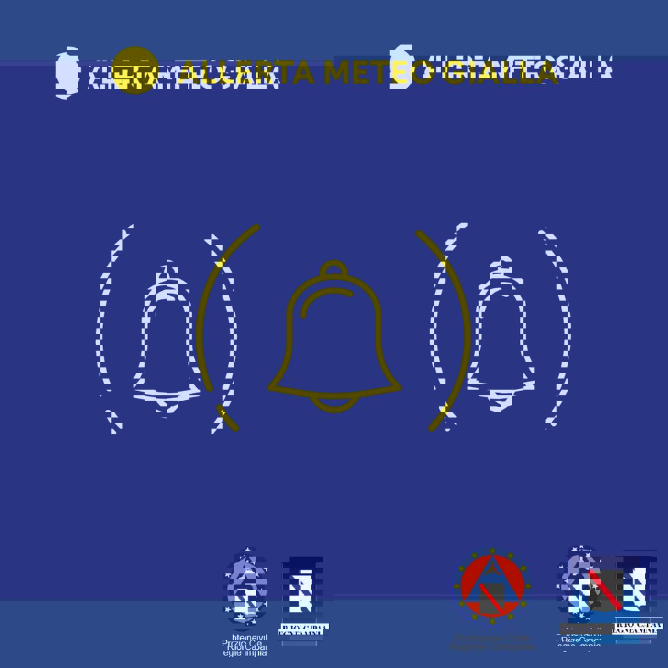 Allerta Gialla sulle zone 1,3,5,6,8 (Piana campana, Napoli, Isole del Gofo di Napoli, Area Vesuviana; Penisola Sorrentino-Amalfitana, Monti di Sarno e Monti Picentini; Tusciano e Alto Sele; Piana Sele e Alto Cilento; Basso Cilento).
