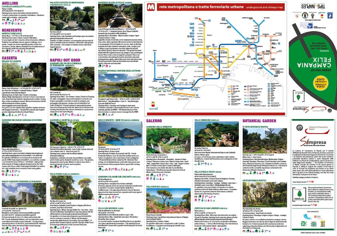 La mappa è stata realizzata in collaborazione con la Direzione Regionale Musei Campania e ha avuto il patrocinio morale della Regione Campania, dei Comuni di Napoli, Salerno, Benevento e Caserta, della Camera di Commercio di Napoli, del FAI Campania, Fondazione Benetton Studi Ricerche, Associazione Parchi e Giardini d’Italia, Fondazione Walton - Giardini La Mortella, Grandi Giardini d’Italia.