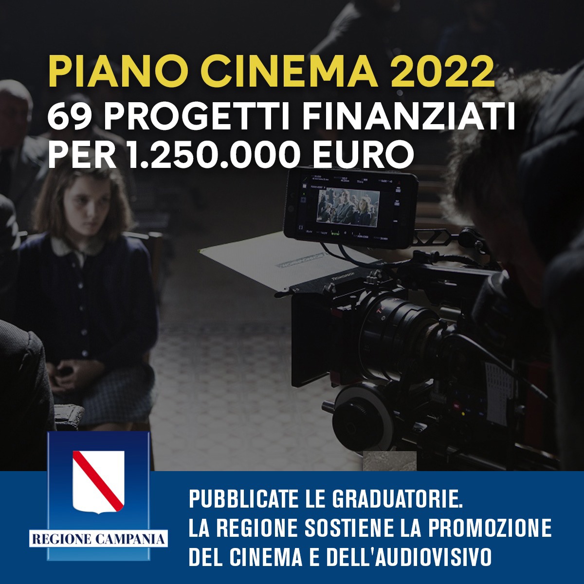 Pubblicate le graduatorie. La Regione sostiene la promozione del cinema e dell'audiovisivo Sul BURC n. 66 del 1° agosto 2022 sono in pubblicazione le graduatorie relative all’Avviso pubblico "Piano Cinema 2022 - Promozione e diffusione della cultura cinematografica e audiovisiva". Le risorse finanziarie pari a € 1.250.000 sono destinate alla concessione dei singoli contributi per: