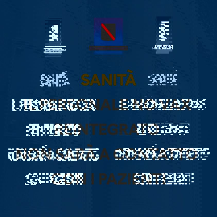 È stata inviata ai Direttori generali della Aziende Sanitarie Locali e delle Aziende Ospedaliere una direttiva a firma del Presidente Vincenzo De Luca, con la quale si fa obbligo di definire l'impiego del personale sanitario non vaccinato contro il virus Sars-Covid19 - in concomitanza con la disposta reintegra in servizio - tutelando la salute dei pazienti e degli operatori vaccinati. Saranno, quindi, messe in campo le necessarie azioni dirette a contrastare ogni ipotesi di contagio, evitando il contatto diretto del personale non vaccinato con i pazienti.