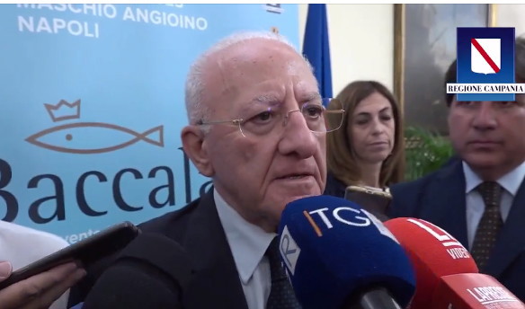 "A margine della presentazione della sesta edizione di BaccalàRe che quest'anno unisce valorizzazione della nostra gastronomia con il sostegno alla ricerca a favore del Pascale, con la stampa facciamo il punto sulle altre questioni all'ordine del giorno: la nuova variante Covid, prudenza senza drammatizzazioni, e gli ultimi fatti di cronaca al Parco Verde di Caivano", afferma Vincenzo De Luca, presidente della Regione Campania. Eccp un video pubblicato sulla sua pagina Facebook.
