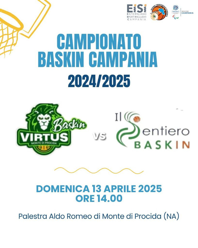 Domenica ci saranno due partite: si comincia alle ore 14 alla Palestra Aldo Romeo di Monte di Procida, dove la Virtus Baskin, che ha un record di 4 vittorie e 3 sconfitte, ospiterà Il Sentiero Baskin, che arriva a questo match con un bilancio di 3 vittorie e altrettante sconfitte.