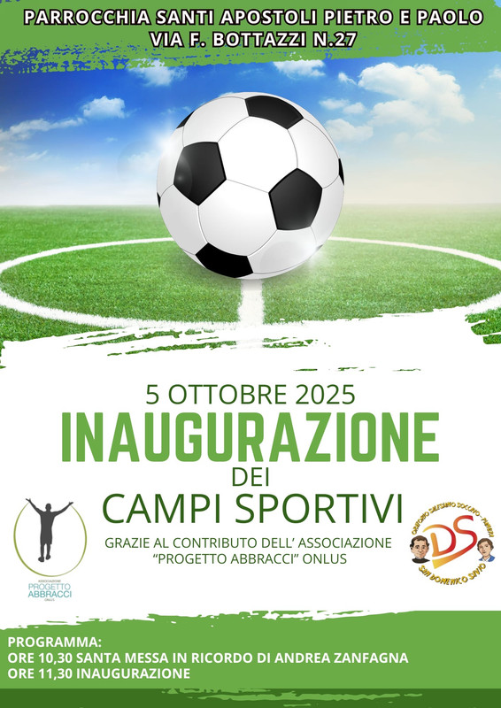 L’Associazione Progetto Abbracci, da anni impegnata nella lotta al disagio socio-culturale e alla dispersione scolastica, annuncia con orgoglio l’inaugurazione di due nuovi campi sportivi – un campetto di calcio e uno di volley – realizzati presso la Parrocchia Santi Apostoli Pietro e Paolo, in via F. Bottazzi 27, a Napoli.