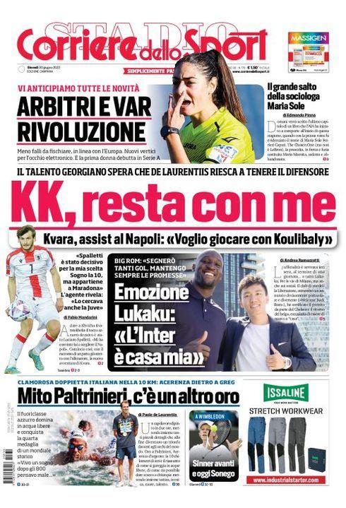 Il Corriere dello Sport, nell'edizione Campania, apre in prima pagina con l’intervista di Kvaratskhelia: “‘KK, resta con me’. Il talento georgiano spera che De Laurentiis riesca a tenere il difensore. Kvara, assist al Napoli: ‘Voglio giocare con Koulibaly’”.