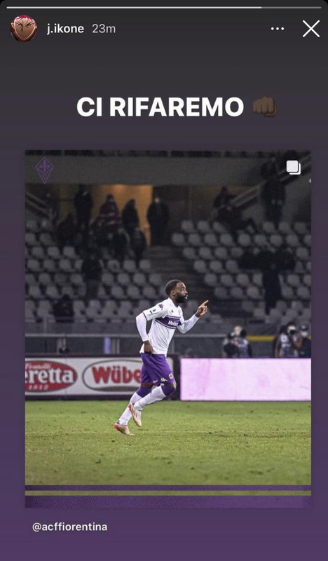 Jonathan Ikone, attaccante della Fiorentina, scrive su Instagram: "Ci rifaremo", dopo la sconfitta col Torino e alla vigilia della sfida col Napoli negli ottavi di Coppa Italia.