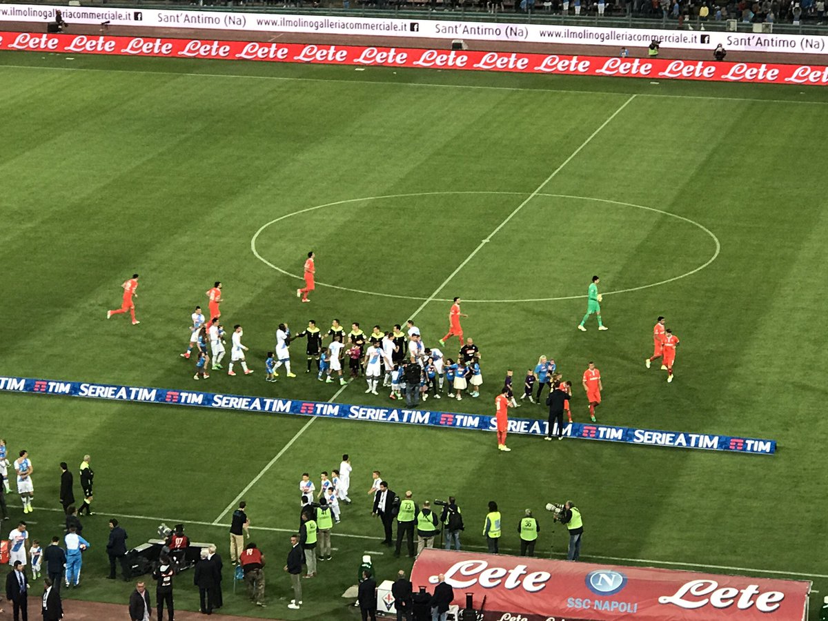 Napoli-Fiorentina, squadre in campo. Ecco una foto pubblicata su Twitter da NapolMagazine.Com.