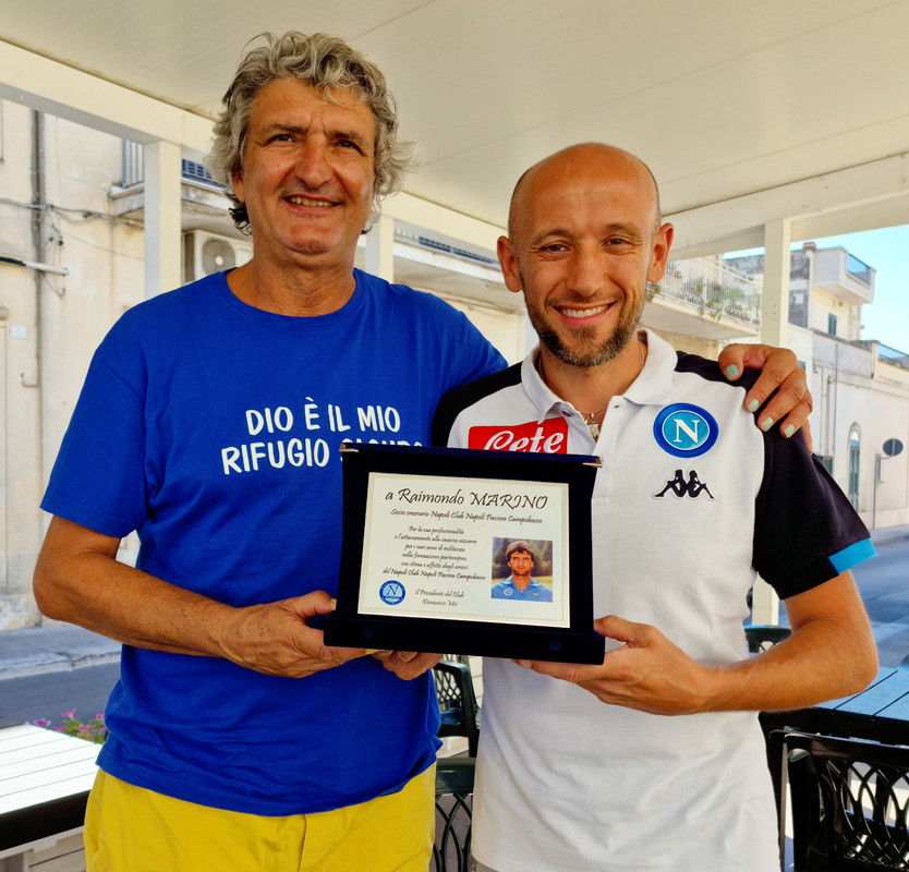 Domenico Mei, presidente del Napoli club Napolipassion Campobasso ha incontrato a Lecce l'ex calciatore del Napoli Raimondo Marino che è stato premiato quale socio onorario del club e poi ha autografato e certificato una sua stupenda maglia Napoli indossata nella stagione 1984/1985 facente parte della collezione del Napolipassion di Domenico Mei.
