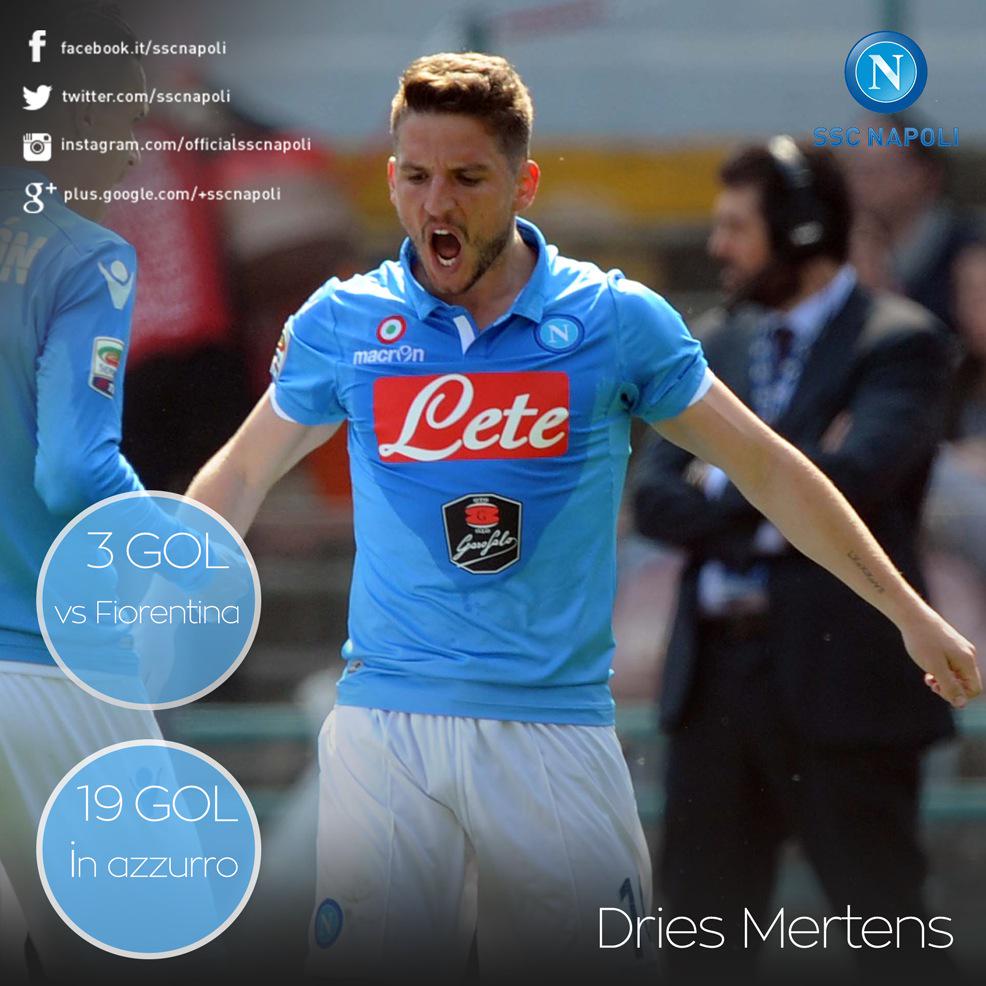 "Il 1º gol in @SerieA_TIM e in finale di #TimCup, la Fiorentina nel cammino di @dries_mertens14 #NapoliFiorentina", si legge sul canale ufficiale del Napoli su Twitter dove è stata pubblicata la seguente foto.