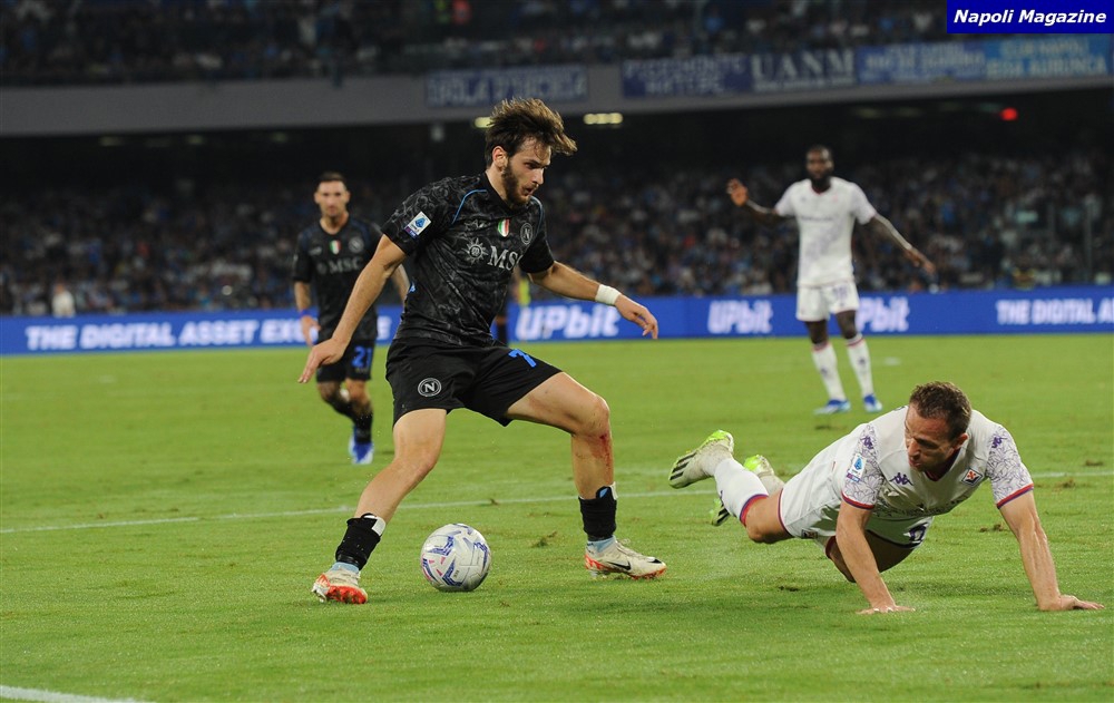 La Gazzetta dello Sport ha giudicato la prestazione di Khvicha Kvaratskhelia, attaccante del Napoli, contro la Fiorentina, da 5 in pagella: "Alla fine Garcia lo inventa pure esterno di destra. Il georgiano è quello che soffre di più un Napoli poco dominante del gioco. Ma anche lui deve dare di più".