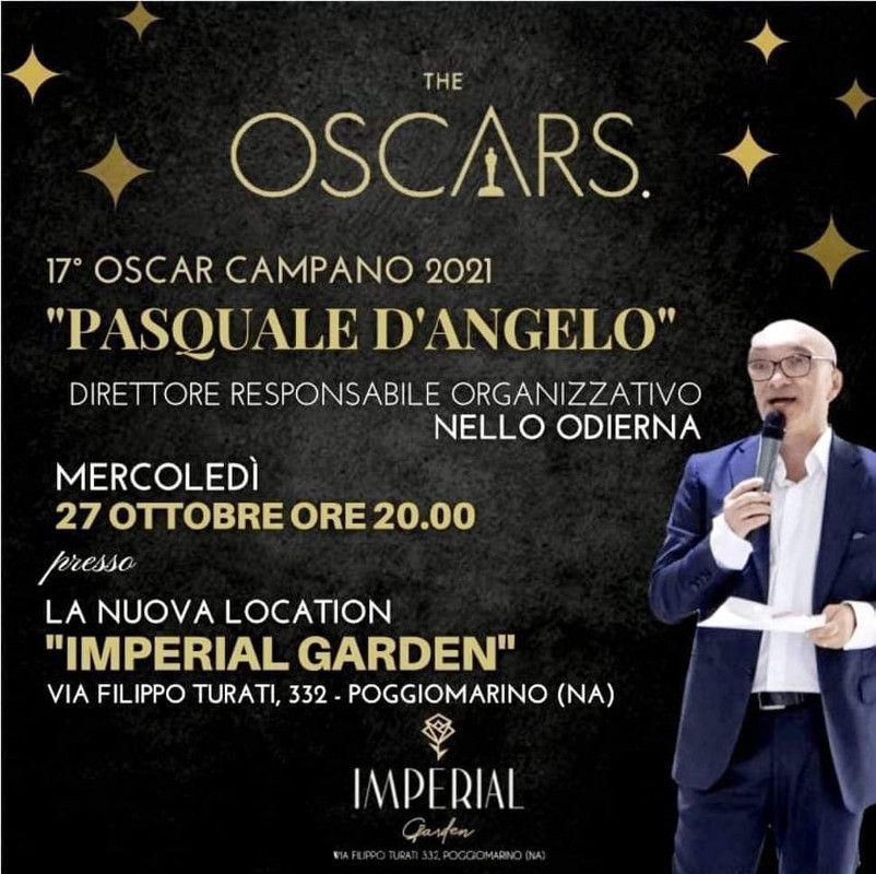 Si terrà oggi, mercoledì 27 ottobre, nella splendida cornice dell’Imperial a Poggiomarino, la 17.ma edizione dell’Oscar Campano, premio ideato da Nello Odierna e tributato alla memoria di Pasquale D’Angelo, che celebra i personaggi dello sport, spettacolo e comunicazione che si sono contraddistinti nell’ultimo anno. Antonio Petrazzuolo, direttore di "Napoli Magazine", è tra i premiati.
