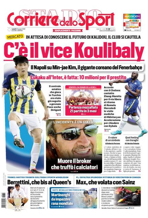 Il Corriere dello Sport, edizione Campania, dedica spazio al calciomercato del Napoli: "C'è il vice Koulibaly. In attesa di conoscere il futuro di Kalidou, il club si cautela. Il Napoli su Min-jae Kim, il gigante coreano del Fenerbache".