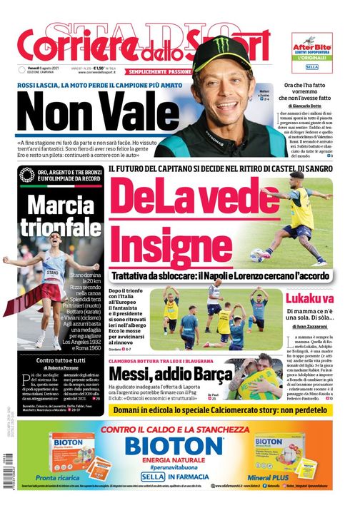 Nell'edizione Campania del Corriere dello Sport, spazio al Napoli: "DeLa vede Insigne. Trattativa da sbloccare: il Napoli e Lorenzo cercano l'accordo. Il futuro del capitano si decide nel ritiro di Castel di Sangro".