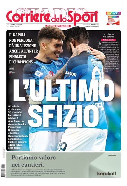 Il Corriere dello Sport, edizione Campania, ha dedicato spazio in prima pagina al Napoli: "L'ultimo sfizio. Il Napoli non perdona: dà una lezione anche all'Inter finalista di Champions".