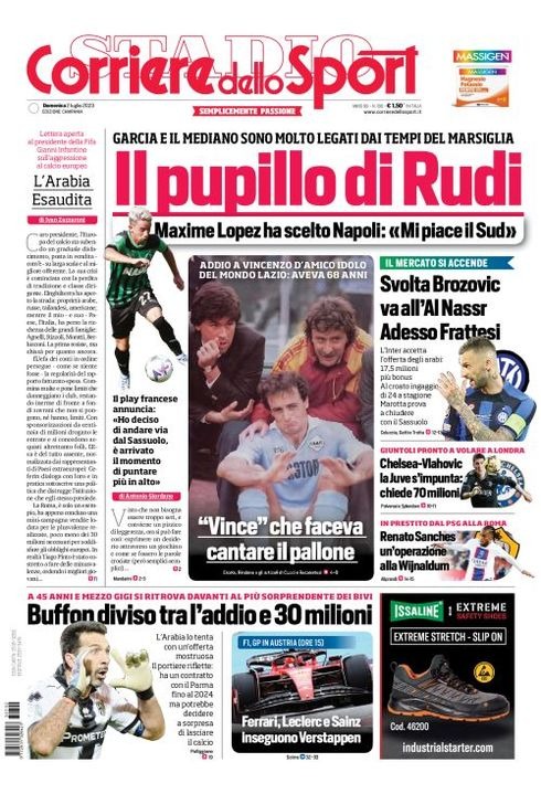 Il Corriere dello Sport, nell'edizione campana, apre con "Il pupillo di Rudi". Garcia e il mediano sono molto legati dai tempi del Marsiglia. Maxime Lopez ha scelto il Napoli: "Mi piace il Sud". Il play francese annuncia: "Ho deciso di andare via dal Sassuolo, è arrivato il momento di puntare più in alto".