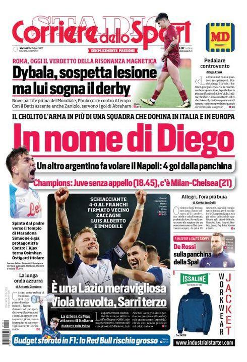 Il Corriere dello Sport, nell'edizione campana, apre con "In nome di Diego". Il Cholito l'arma in più di una squadra che domina in Italia e in Europa. Un altro argentino fa volare il Napoli: 4 gol dalla panchina. Spinto dal padre verso il tempio di Maradona, Simeone è già protagonista. Contro l'Ajax torna Osimhen, Ostigard titolare.